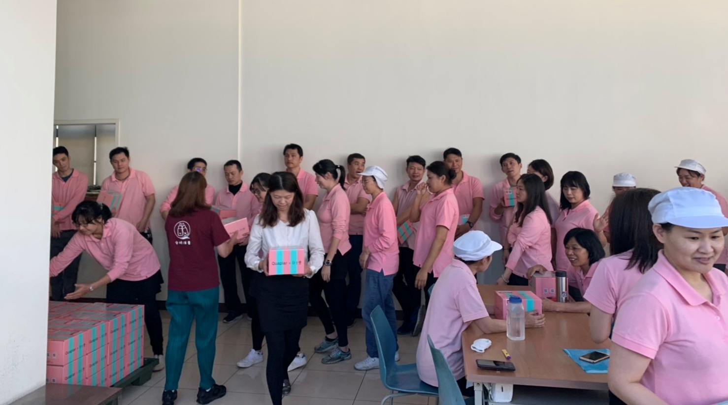 | 每年一到12月就慢慢開始有了聖誕節的慶祝氛圍,在12/25聖誕節當天, 全體同仁們都在休息室集合,咦!是要舉辦抽獎活動還是交換禮物呢?! 原來是我們大家長看到同仁們的辛勞,也聽見同仁們想要一起變漂亮的心願, 特別為辛苦的工廠同仁們準備了一個驚喜,由儷妍美麗的大家長一份一份的發禮物~ ![]() ![]() 這是"Quaplar 一起變漂亮寶盒",一共有5款面膜,精緻的盒子上印著有小樂的Q版圖像, 看著大家興奮又驚喜的表情,收著這一份充滿驚喜的禮物,就讓大家一起變漂亮吧! ![]() |